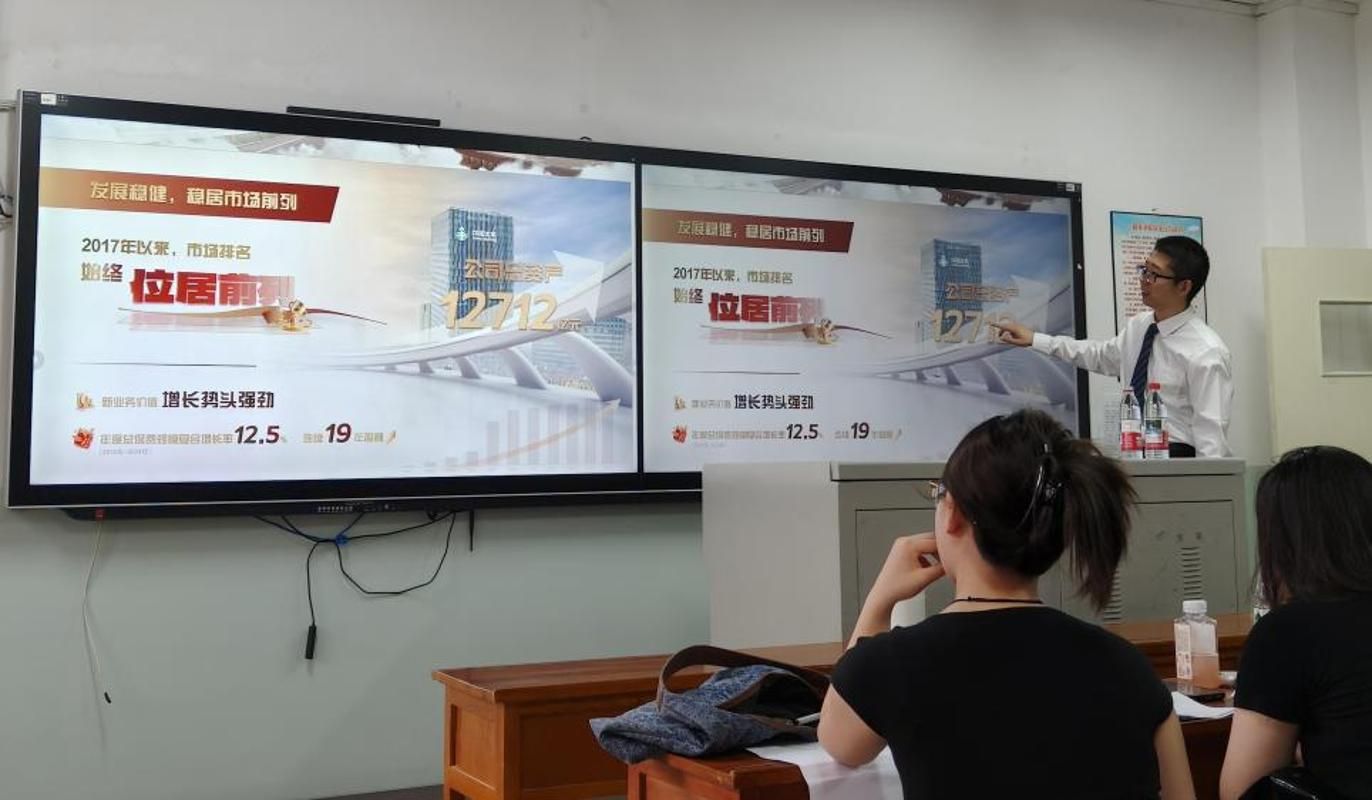 第一阶段于 2025 年 6 月 30 日下午在立信楼 105 教室进行,采用“请进来 ”的方式进行,邀请了太平人寿山西分公司资深业内人士陈思远给同学们做了一场名为“ 向下扎根、向上生长 ”的主题报告。在此报告中陈思远以精准的数据为锚点,深入揭示了中国保险市场的庞大体量和持续增长的态势,2023 年原保险保费收入已经突破了 5.1 万亿元大关,其中寿险和健康险持续担当着主力引擎的角色,而财产险也在稳健前行,保险业的未来是多元化和科技化并存。同时,更以其自身成长为镜子,勾勒出多元的保险职业发展图景,结合自己的亲身经历,强调进入职场所要具备的基本能力,帮助同学们认识到保险业的广阔天地和自身发展的无限可能。